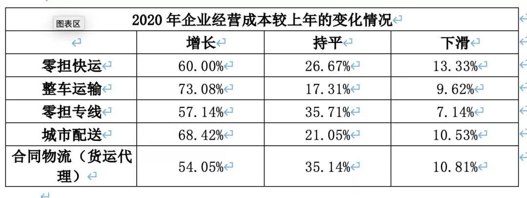 据中物联公路货运分会调查,公路货运企业受各种因素影响,经营成本继续增长,企业经营压力持续加大。调查数据显示,62.38%的货运老板反映2020年企业经营成本较上年增长,26.73%的反映持平,仅有10.89%的反映经营成本出现下滑。受疫情影响,企业复工复产和持续经营中的消杀和防疫成本持续高企。各地纷纷出台消杀政策,在货物进口、城市配送等各环节做好预防性消毒工作。物流企业(特别是部分重点领域如冷链物流、电商物流、城市配送企业、快递快运企业)防疫相关成本明显增加明显,据测算物流领域全年预防性消杀、货物监测等相关超过700亿元。部分疫情反复地区对于货车司机核算检测提出7日一检、3日一检等具体要求,也增加了企业检测成本。