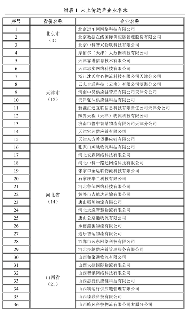 今年三季度,正式上传单据的30个省份(青海暂无网络货运企业)和新疆生产建设兵团,所辖网络货运企业整合运力规模排名前三位的省份依次为江苏、山西、山东;完成运单量排名前三位的省份依次为天津、山西、江苏;单据上传率排名前三位的省份依次为河南、山东、吉林。今年前三季度,1755家网络货运企业中,有293家企业未上传运单(详见附表1),其中:山东34家,内蒙古27家,安徽24家;536家企业未按要求上传驾驶员位置信息(详见附表2),其中:贵州89家、江苏49家、陕西44家。