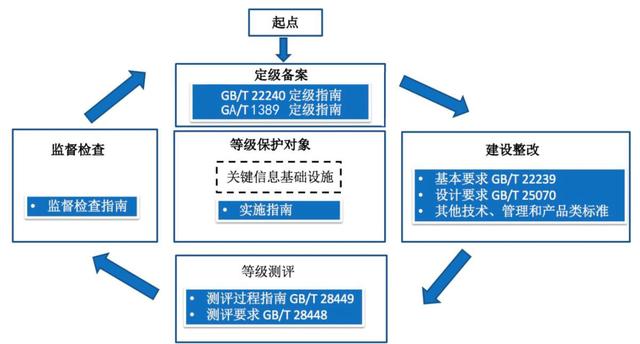 根据《信息安全等级保护管理办法》规定,等级保护工作主要分为五个环节,也就是我们通常我们所说的五个基本规定动作,分别为定级、备案、安全建设整改、等级测评、监督检查。