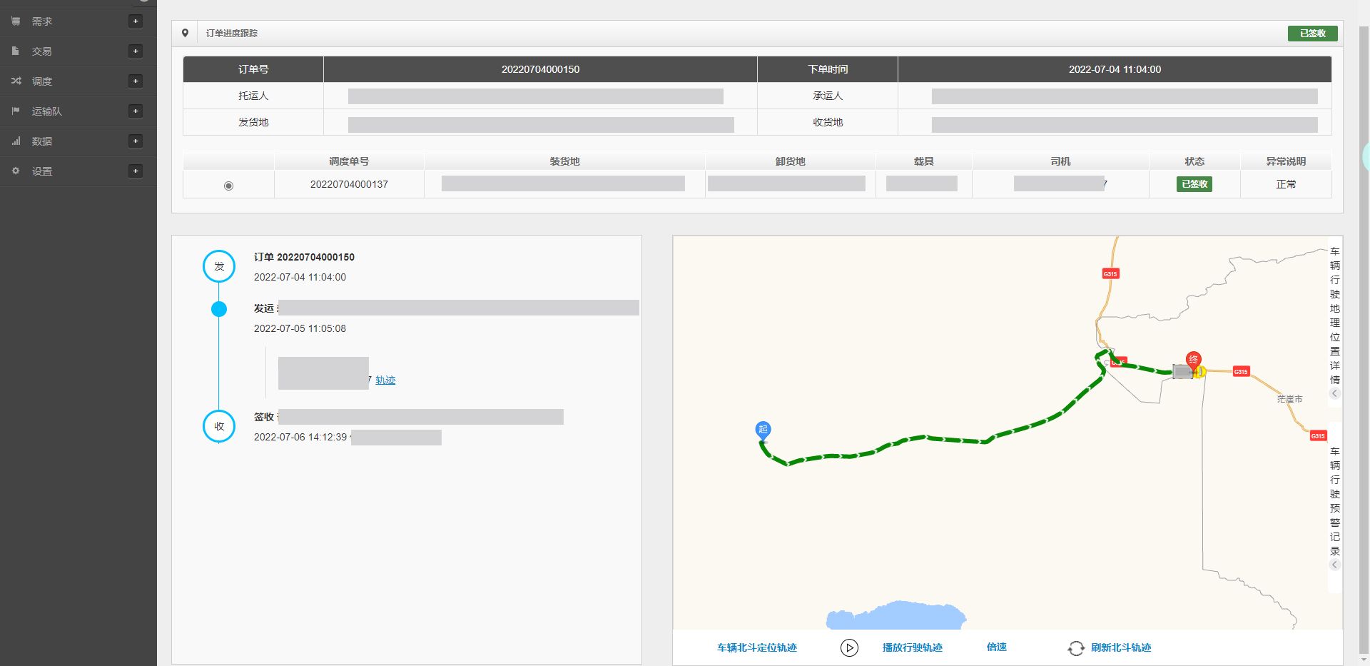 5.平台系统中司机、载具、电子合同、保险、ETC、油气发票、车辆运输轨迹和司机APP双定位等全要素的物流过程信息,可实现辅助增强企业授信,增加企业授信额度,降低资金使用成本。