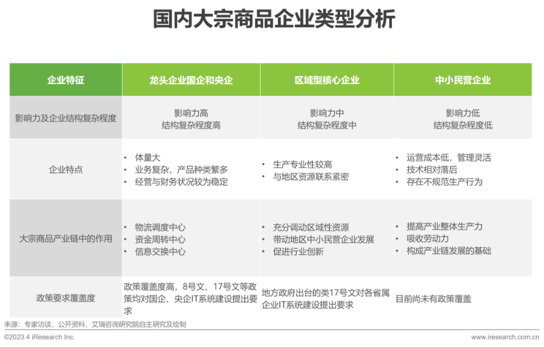 国内大宗商品企业主要分为三类,内部数字化程度低与商品价格波动性强是大宗商品企业当前发展需要面临的核心挑战