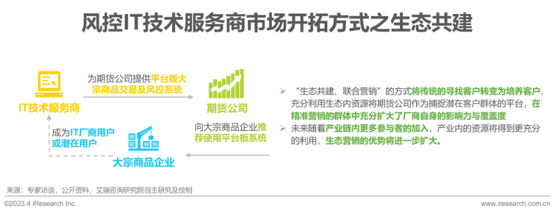 IT厂商与期货公司合作以生态共建的方式开拓市场是目前业内卓越的营销方式;IT厂商与风控部门之间的合作大于竞争