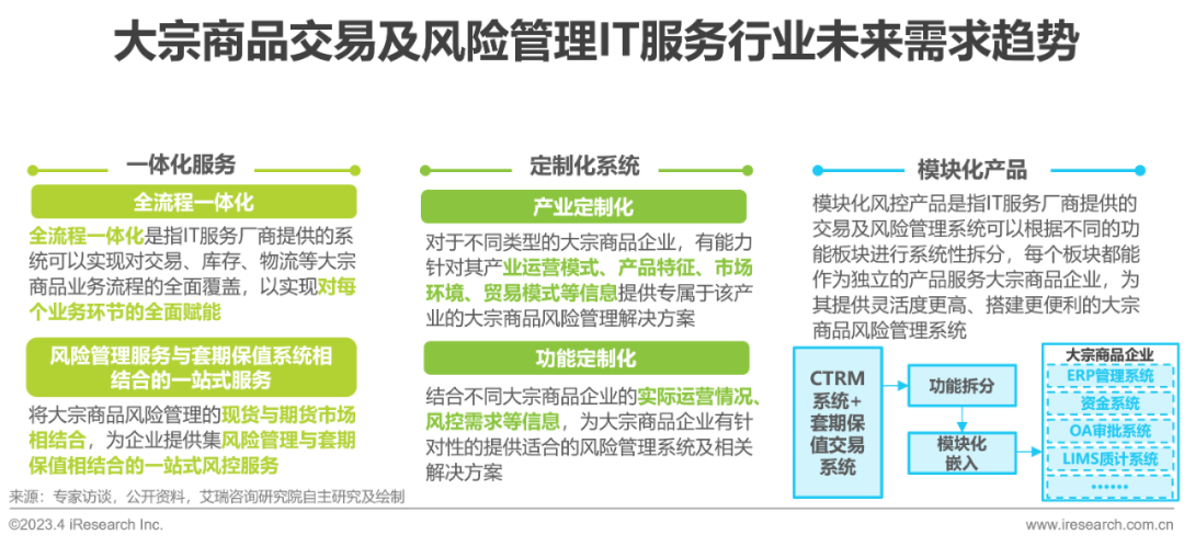 专业的IT服务是大宗商品企业数字化转型的关键,完整的系统解决方案是新一代大宗商品风控IT服务的能力诉求